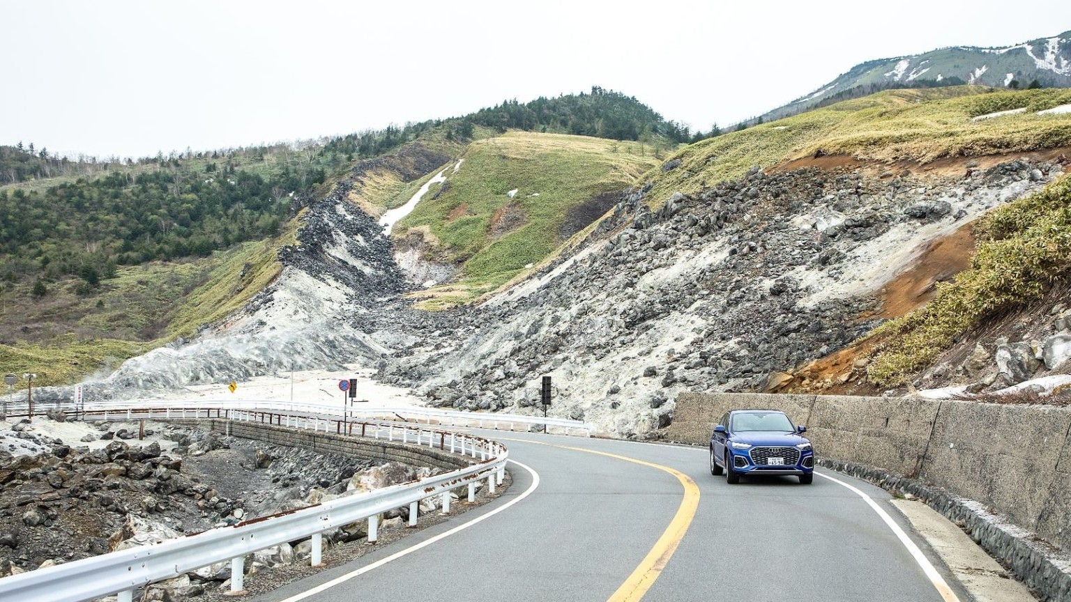 Audi SUVの中でも、一際、優美で独特の存在感を放つ「Audi Q5 Sportback」は、草津の雄大な自然美との調和も抜群。