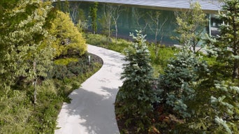 最初に訪れたのは、上信越自動車道碓氷軽井沢インターから約15分の「軽井沢千住博美術館」。ここは日本画家・千住博氏の代表的な作品を存分に鑑賞できる美術館です。千住氏の美しく幻想的な作品はもちろんですが、世界を舞台に活躍する西沢立衛氏が建築した建物も見応え十分。画家と建築家、2人のアーティストの感性が見事に融合し、訪れる人を魅了します。広大な敷地に植えられた150種類60000株の樹木や草花も風景を鮮やかに彩ります。