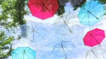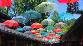 季節のイベントを数々開催している星野エリアでとくに人気のイベントが「軽井沢アンブレラスカイ」です。今年は6月3日〜7月10日に開催。100本を超える傘がハルニレテラスの街並みをカラフルに彩ります。期間中は傘づくりワークショップが開催されたり、「虹色レモネード」も限定発売されます。