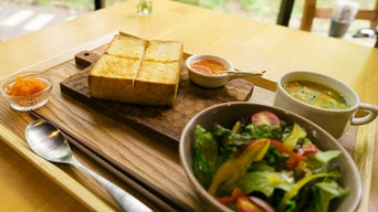 同店自慢のモーニング。小麦の風味と食感、食パンの美味しさをダイレクトに楽しめる「厚切りバタートースト」と、信州ならではの旬のフルーツを使った自家製デザートは「苺ロールケーキ」をセレクト。見た目も美しいケーキは生クリームと苺の酸味が絶妙のバランスです。初々しい新緑を眺めながら、ゆったりといただくモーニングは、記憶に刻まれる旅の一コマになりました。Forest Vale(Bistro)