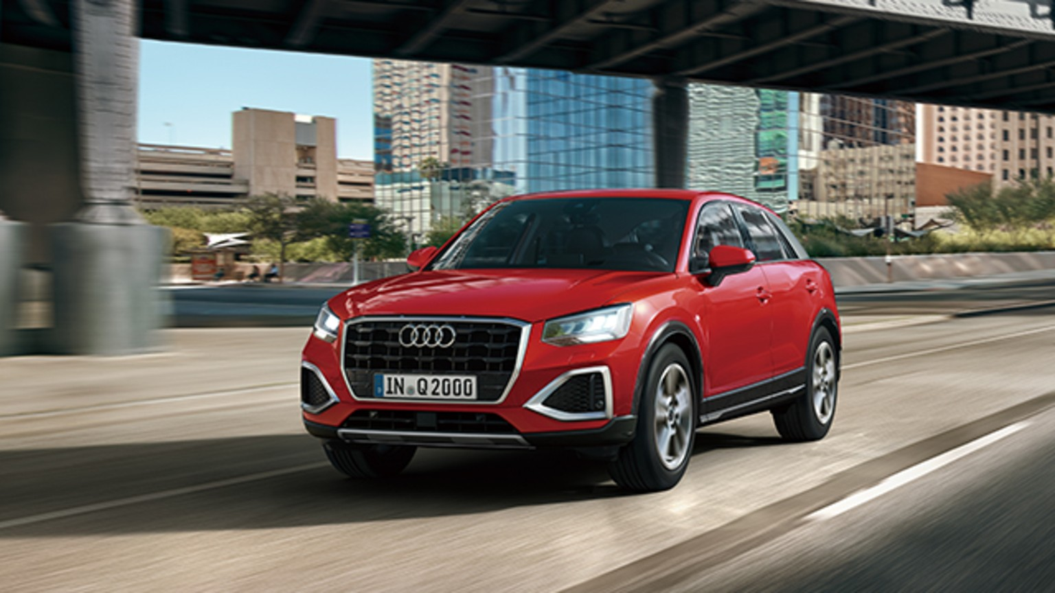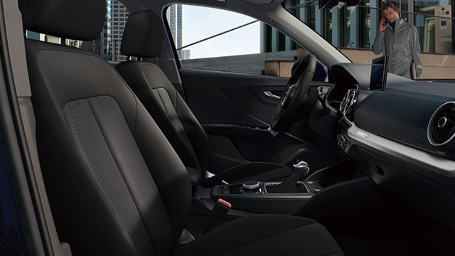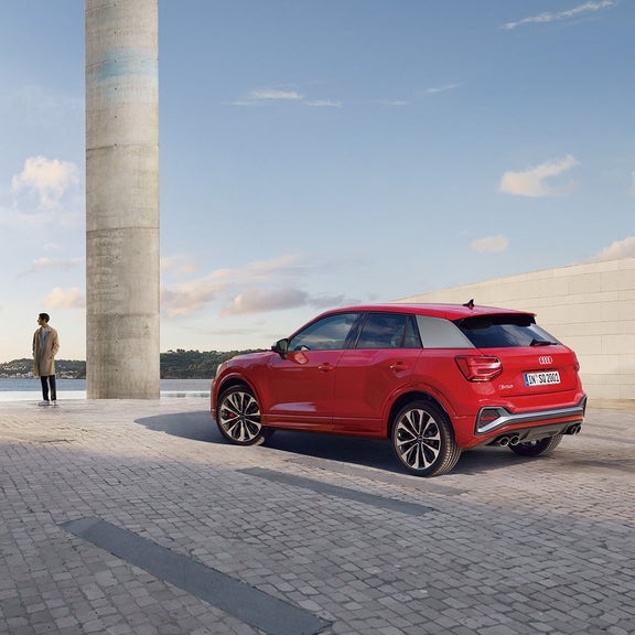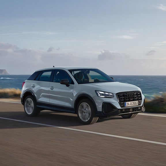 シンプルな水平基調のダッシュボードと、随所に配された幾何学的なデザインエレメント。 Audi Q2はインテリアでも独自の個性を放ちます。 コンパクトなポディでありながら前後席ともに十分なヘッドクリアランスを確保し、また、通常時405ℓ最大1,050ℓの広々とした積載スペースはシチュエーションに合わせて、 高いユーティリティを発揮。そして、MMIナピゲーション*¹やバーチャルコックビット*¹、スマートフォンインターフェース*²といったインフォテインメントの数々が、ドライプの利便性を高めます。